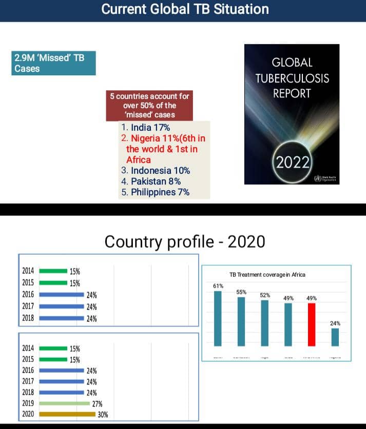 According to the Global TB Report 2022, an estimated 2.9 million TB cases were missed globally. Nigeria ranks sixth in the world and first in Africa among countries with the highest burden of undetected cases.