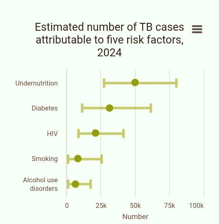 Five risk factors attributed to TB by WHO in 2024